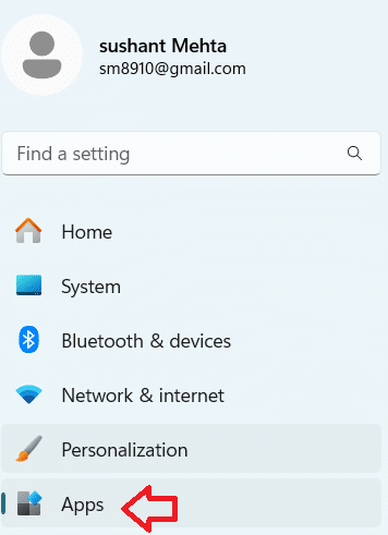 - Click Apps in the left pane