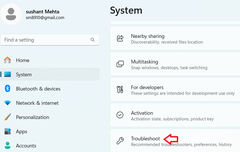 - Scroll down and click Troubleshoot