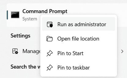 - Right-click Command Prompt in the search results and select Run as administrator