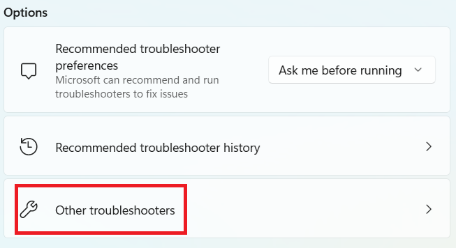 - In the next window, click Other troubleshooters in the Options field