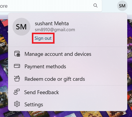 - Click the profile icon (next to the search bar) and check the account details