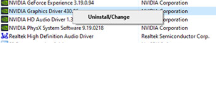 Uninstalling NVIDIA Graphics Card Driver via Control Panel