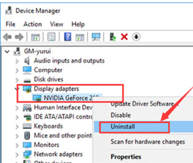 Uninstalling a Nvidia Driver via Device Manager