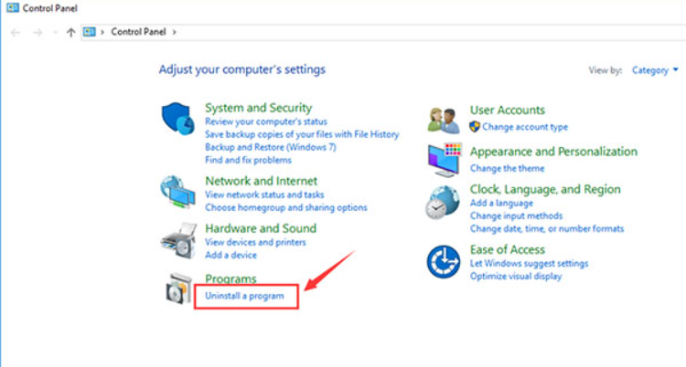 - Click Uninstall a program