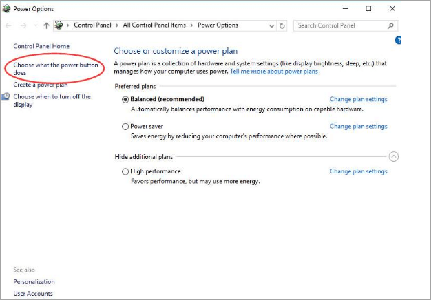 - In the Power Options window, click Choose what the power button does