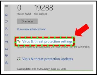 - Next, click Virus & threat protection settings
