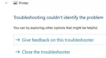 If the Printer troubleshooter is able to identify the problem, you are a step closer to resolving the issue and being able to print via USB. However, it’s possible that it fails to identify the root cause. This can happen, so don’t worry too much if you see a message on your screen similar to the one shown below.