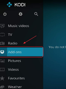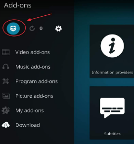 - Come back to Kodi home page. Click Add-ons in the Menu section in the left pane and then click the Package icon