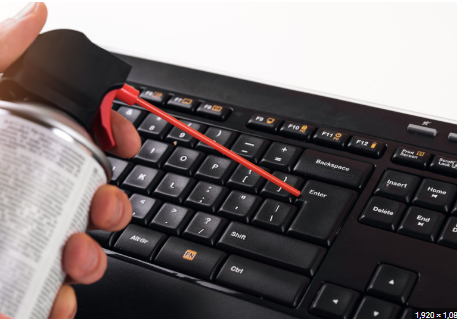For stubborn debris, using the compressed air can blow the air between the keys. Don’t forget to spray from multiple angles and make sure the nozzle is at least half an inch from the keys.