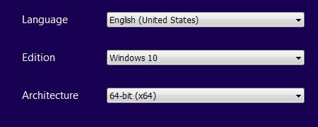- In the next screen, select desired Language, Edition, and Architecture of the Windows OS you want to install.