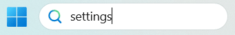- Type settings in the search bar in the taskbar