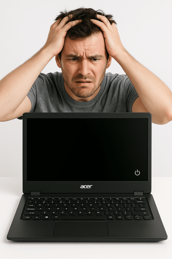 - My Acer laptop is not turning on even when the blue light is on — what should I do?