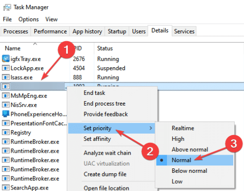 - Locate ModernWarfare.exe, right-click it, select Set Priority, and then select Normal