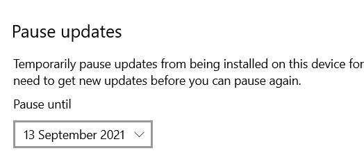 - Select the date until which you want to turn off Windows updates. This setting allows you to stop windows updates for your device for up to a maximum of 35 days.
