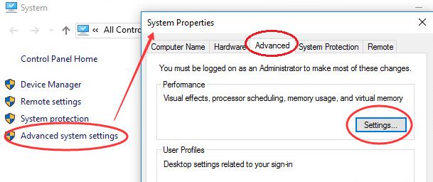 - In the Performance Options window, click Advanced tab