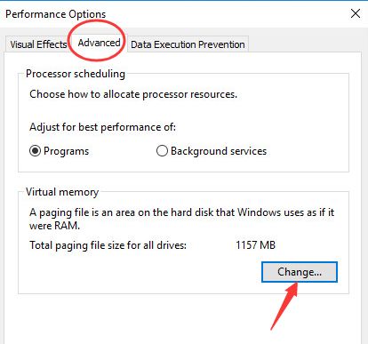 - Under Virtual memory, click Change