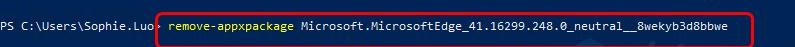 - In the blue pop-up window, type get-appxpackage *edge* and hit Enter on the keyboard