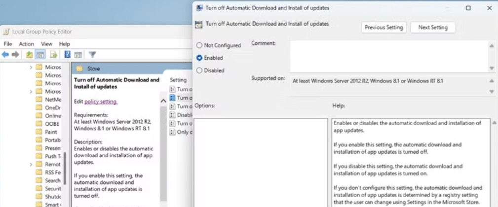 Another workaround is to stop Microsoft Store app auto update feature using the Local Group Policy Editor. However, this is possible only if you’re running Professional version or a higher version of Windows.