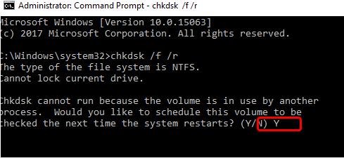 - Windows will show a message that says it cannot run check disk as files are in use. It will also ask you whether you want to run chkdsk at the next OS restart. Click Yes.