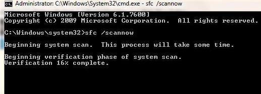 - When you see a blinking cursor appears in the command window, type SFC /scannow