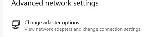 - In the network settings screen, click change adapter options under Advanced Network settings