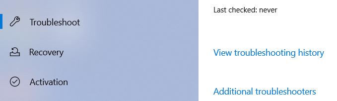 - In the left side bar, click Troubleshoot