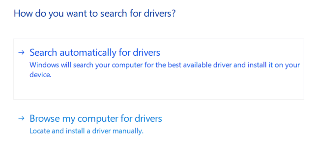 - In the next window, select the first option “Search automatically for updated driver software”. Windows will now search the system for the latest driver. If it finds one, it will install the updated driver. If it doesn’t find an updated version, you’ll receive a message stating the current driver is up to date