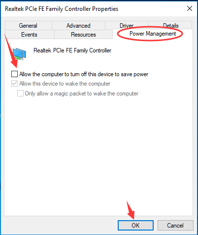 - Uncheck the option- Allow the computer to turn off this device to save power