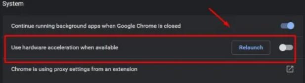 - In the search results, look for the “use hardware acceleration when available” option and click the toggle switch to turn it off.