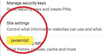 - Under “Privacy and security“, you will find an option Site settings, click on it